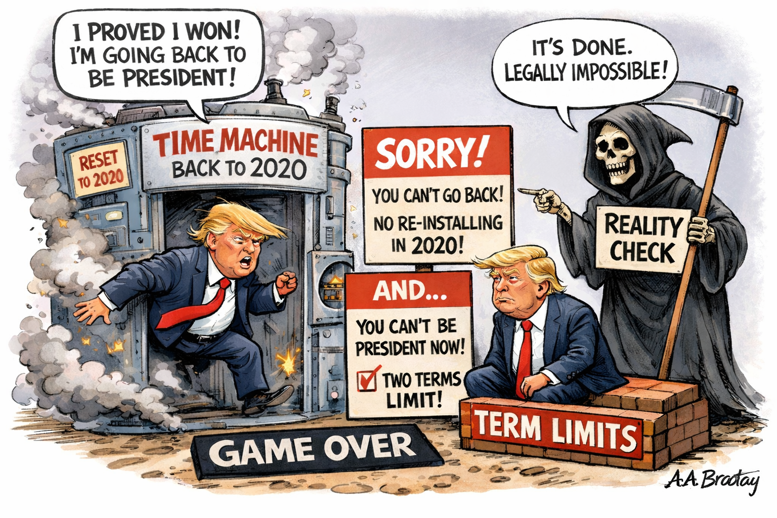 - Even if you could, beyond the shadow of a doubt, prove what you’re trying to prove—so what? It’s over. You can’t go back in time and be reinstalled as president in 2020, and if somehow you could, you also couldn’t be president now, because you would have served two consecutive terms, rendering the obsession legally meaningless and politically sterile. It is an argument without remedy, consequence, or utility.