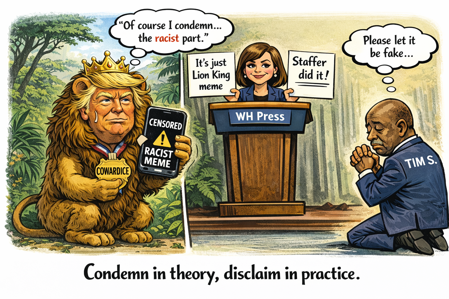 “This is from an internet meme video depicting President Trump as the King of the Jungle and Democrats as characters from The Lion King.”
