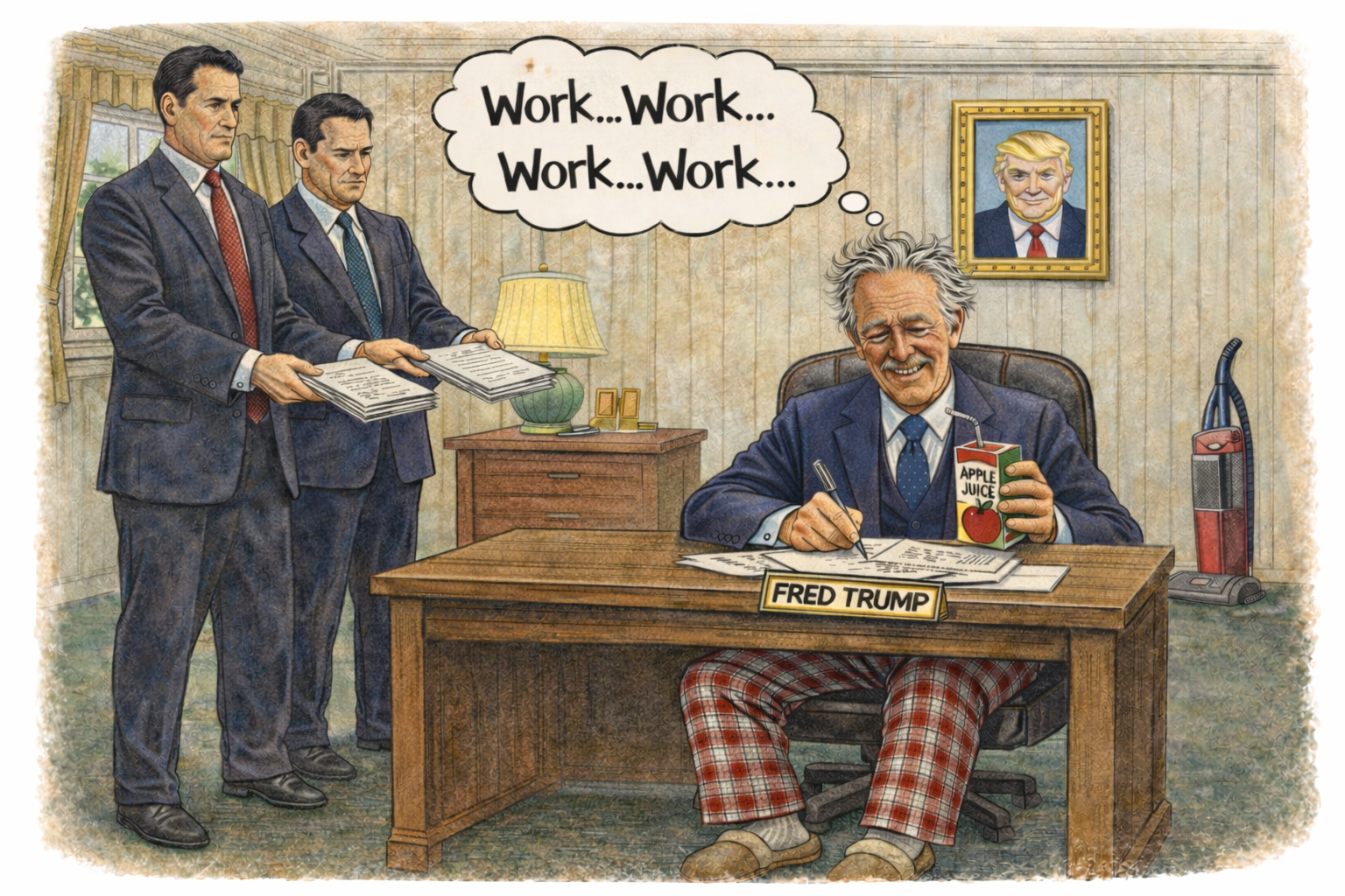 And unlike Fred Trump’s mock office, this one came with a nuclear arsenal, a federal bureaucracy, and a press corps still pretending the man at the desk was doing the job.